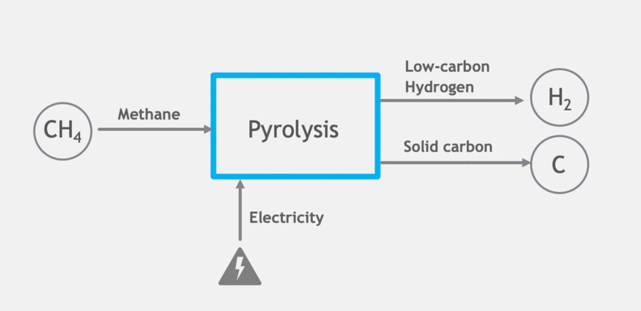 甲烷 (CH ) 热解过程[也称为甲烷裂化或绿松石氢 (H₂ ) 产生]是 CH₄ 热(高温)分解为 H₂ 气体和固体碳。 在没有氧气的情况下,这个过程通常发生在 800°C 以上。CH₄ 热解过程的主要产物是 H₂ 和固体碳,通常包含 炭黑、石墨和石墨烯。CH4 热解的过程如下: