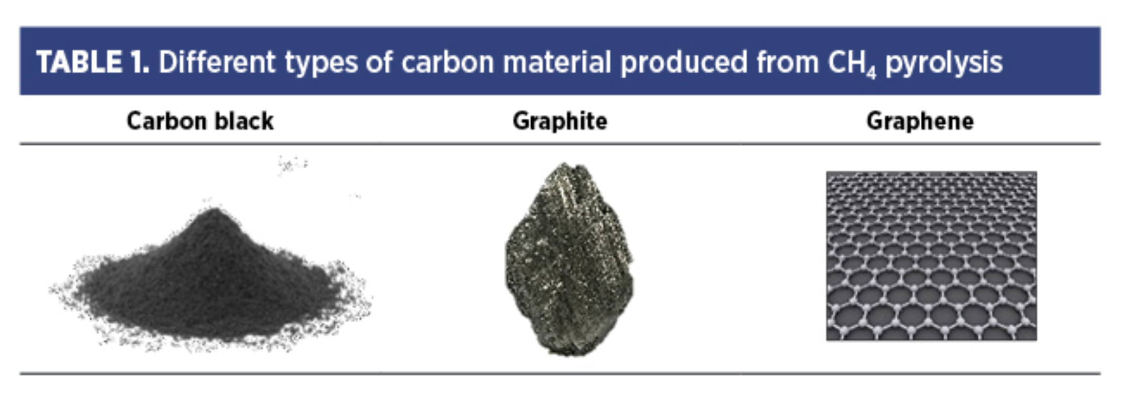 氧化碳 (CO₂) 的形式排放。碳黑和石墨可用于轮胎和电池,而石墨烯可用于电池、电气/光子电路、混凝 土和各种医疗应用 (表 1)。